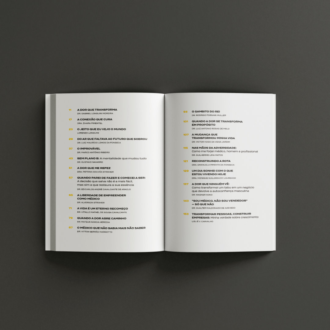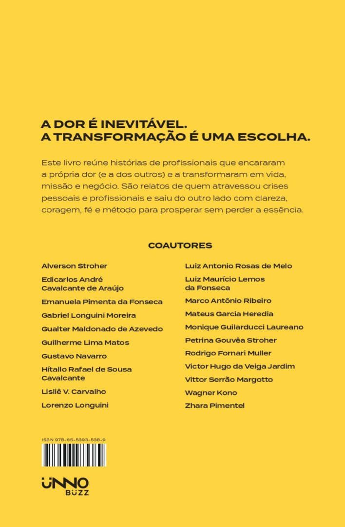 A dor que transforma apresenta o relato de profissionais que foram atravessados pela dor — física, emocional, espiritual e financeira — e decidiram escutar o que ela tinha a dizer. Eles assumiram responsabilidade sobre a própria jornada e transformaram sofrimento em direção, fé em ação e conhecimento em impacto real.