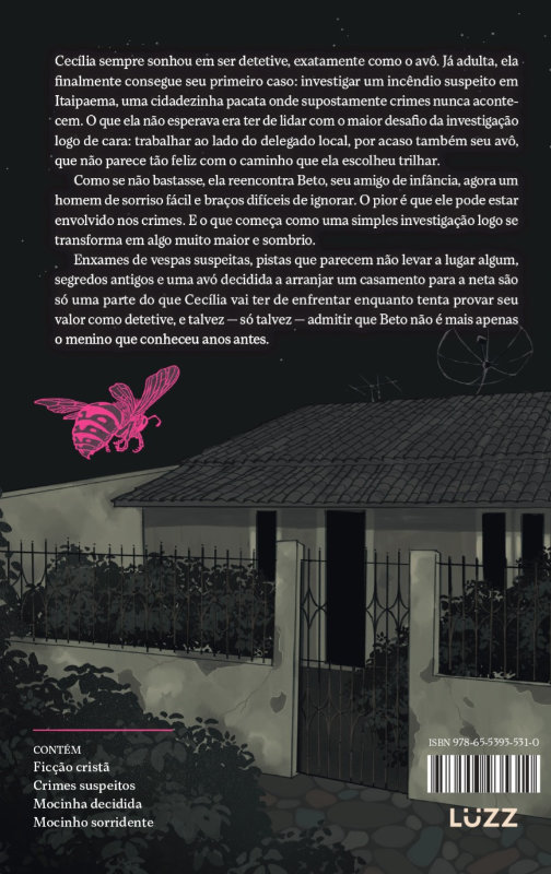 Enxames de vespas suspeitas, pistas que parecem não levar a lugar algum, segredos antigos e uma avó decidida a arranjar um casamento para a neta são só uma parte do que Cecília vai ter de enfrentar enquanto tenta provar seu valor como detetive, e talvez — só talvez — admitir que Beto não é mais apenas o menino que conheceu anos antes.