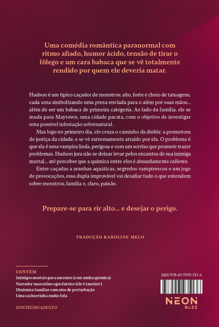 Mas logo no primeiro dia, ele cruza o caminho da diabla: a promotora de justiça da cidade, e se vê extremamente atraído por ela. O problema é que ela é uma vampira linda, perigosa e com um sorriso que promete trazer problemas. Hudson jura não se deixar levar pelos encantos de sua inimiga mortal… até perceber que a química entre eles é absurdamente caliente.